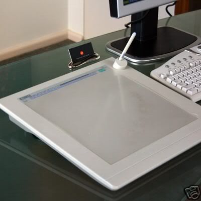 Ancient huh? That one certainly doesn't look ancient. Mine is ancient. I have had it for over six years now and well, it looks ancient now. It's brandless (well, at least not a Wacom or any other famous brand), it's rather small and it's purplish grey. But hey, it still works. *pets tablet*